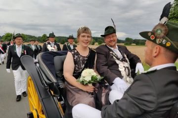 Glücklicher Schütze war Fritz Tauber. Er freute sich sehr über die Königswürde, da seine Mutter Svenja Jubelkönigin ist. Sie regierte vor 25 Jahren mit Sebastian Schmees über die Ostendörfer Kinder. Mit Mia Meis hatte der neue König schnell eine Königin gefunden. Hauptmann Moritz Meis nahm die Königsproklamation vor. Die Polonaise wurde von Stefan Arning und Andreas Overkamp mit ihren Trommeln begleitet.