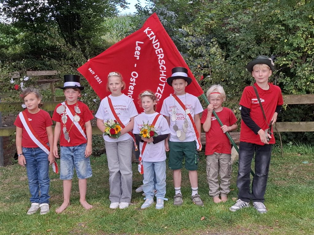 Der Schützenverein Leer-Ostendorf braucht sich um seine Zukunft keine Sorgen zu machen. Am Kinderschützenfest an Jannings Quelle, das übrigens seit 1931 gefeiert wird, nahmen insgesamt 60 Kinder, alle in vereinseigenen T-Shirts, teil.